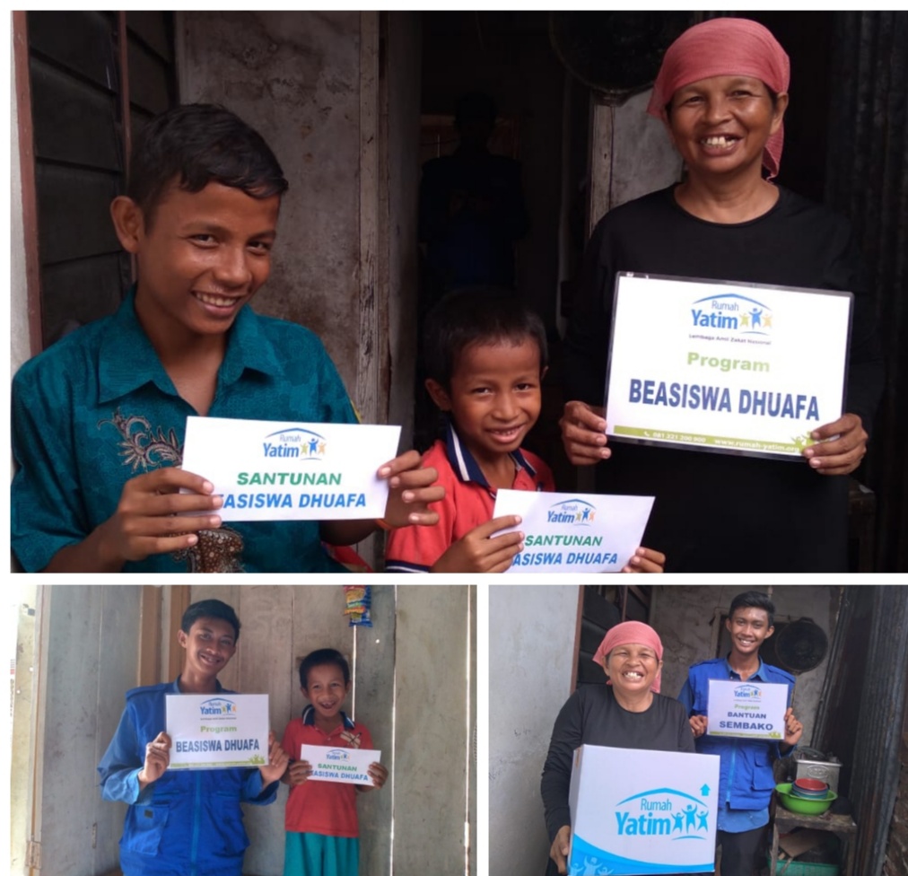 Atas kondisi itulah, Rumah Yatim Cabang Riau mendatangi kediamannya di Jl. Rahmat Gg. Rahmat 2, Kelurahan Kampung Tengah, Kecamatan Sukajadi, Kota Pekanbaru, Provinsi Riau, Kamis (13/8). Pada kesempatan itu, Rumah Yatim memberinya bantuan beasiswa dhuafa bagi Rahmat dan kakaknya, serta bantuan sembako untuk makan mereka sehari-hari.